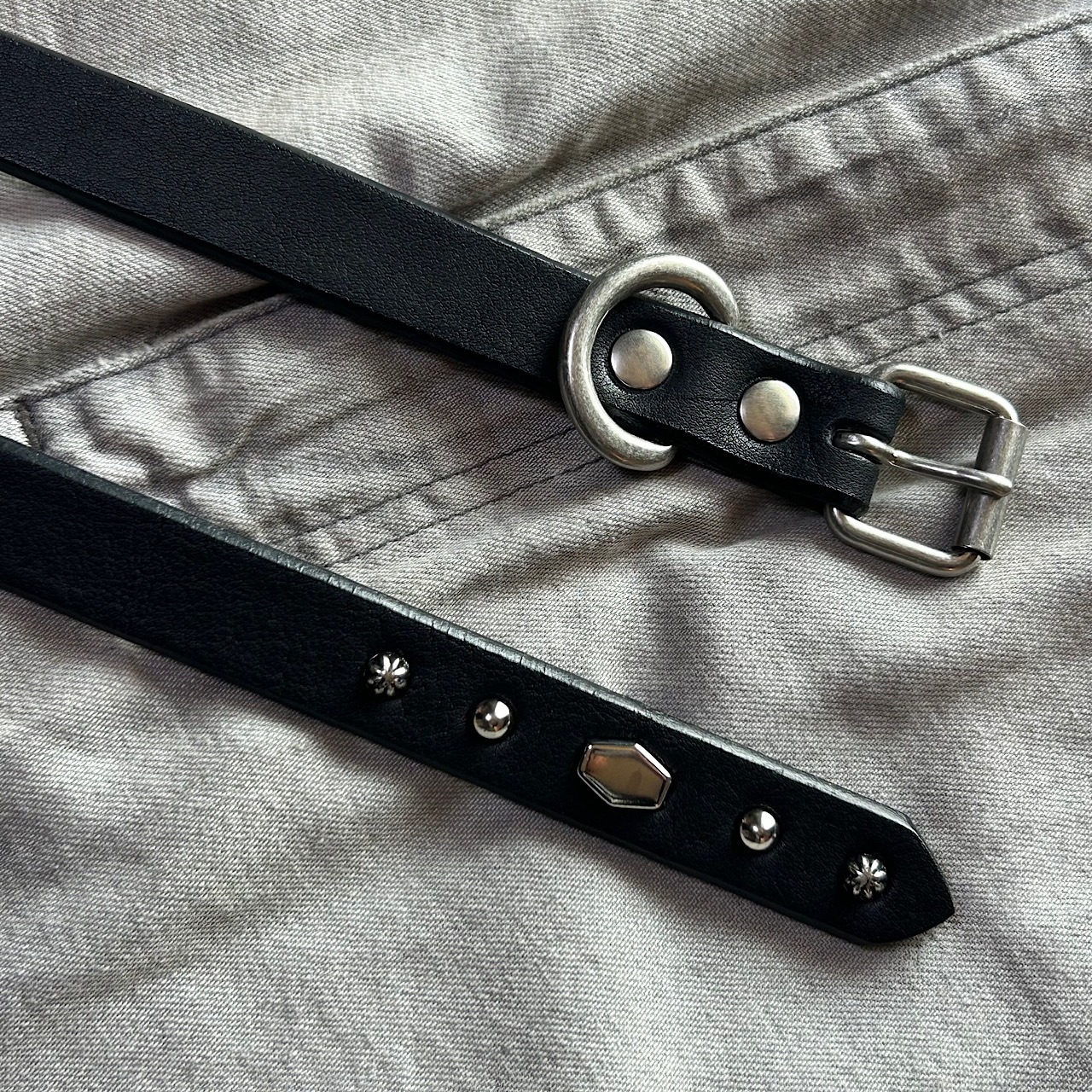 ◾️ヘキサゴンスタッズを中心にあっさりし過ぎないようアンブレラスタッズを両サイドに配置しました。合わせやすくジャンルレスでご使用頂けるデザインになっているかと思います。