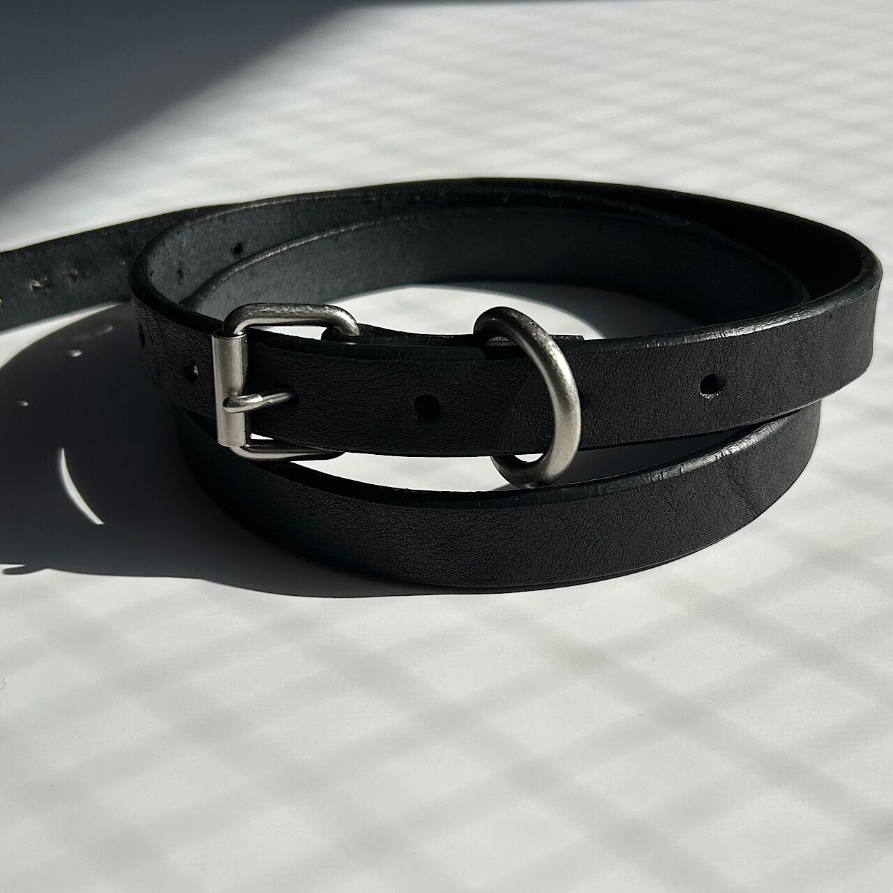 革は柔らかく厚みもありますのでとても馴染みやすく、ストレスなくベルトも垂らせます。