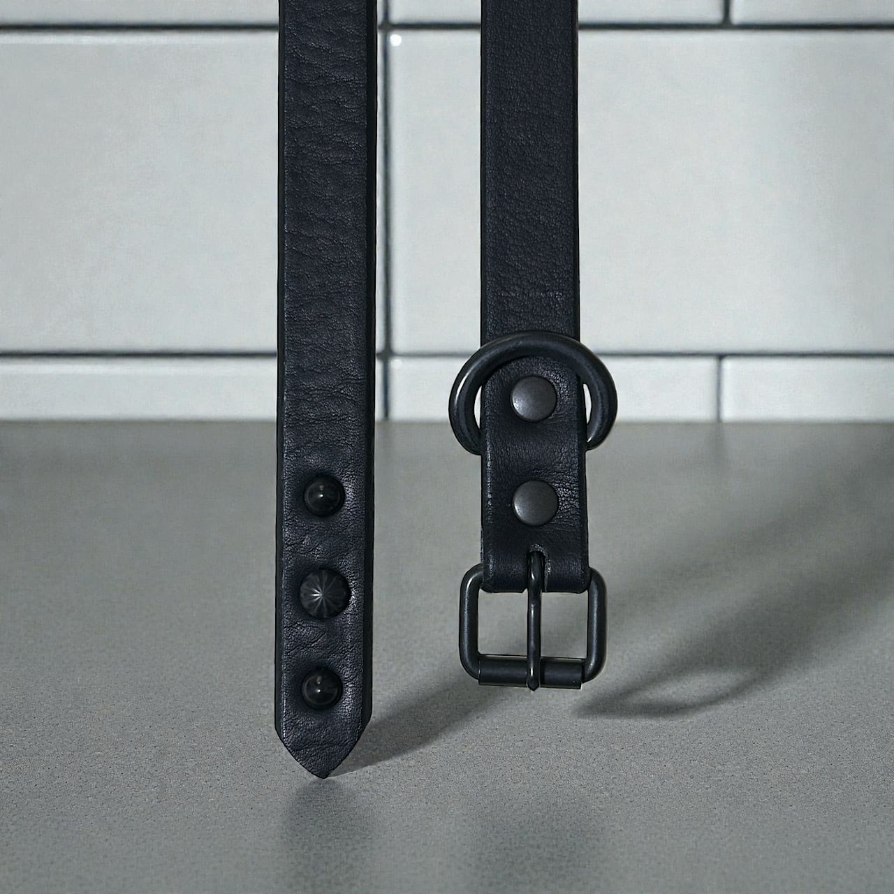 ◾️しなやかなブラックマットのレザーに無骨なスタッズを効かせたデザインが、ストリートのタフネスを象徴。ミリタリー感を漂わせつつ、洗練されたシルエットでモードの雰囲気も兼ね備える。シンプルなのに存在感がある、日常のスタイルを一段とクールに引き上げるベルトになっております。