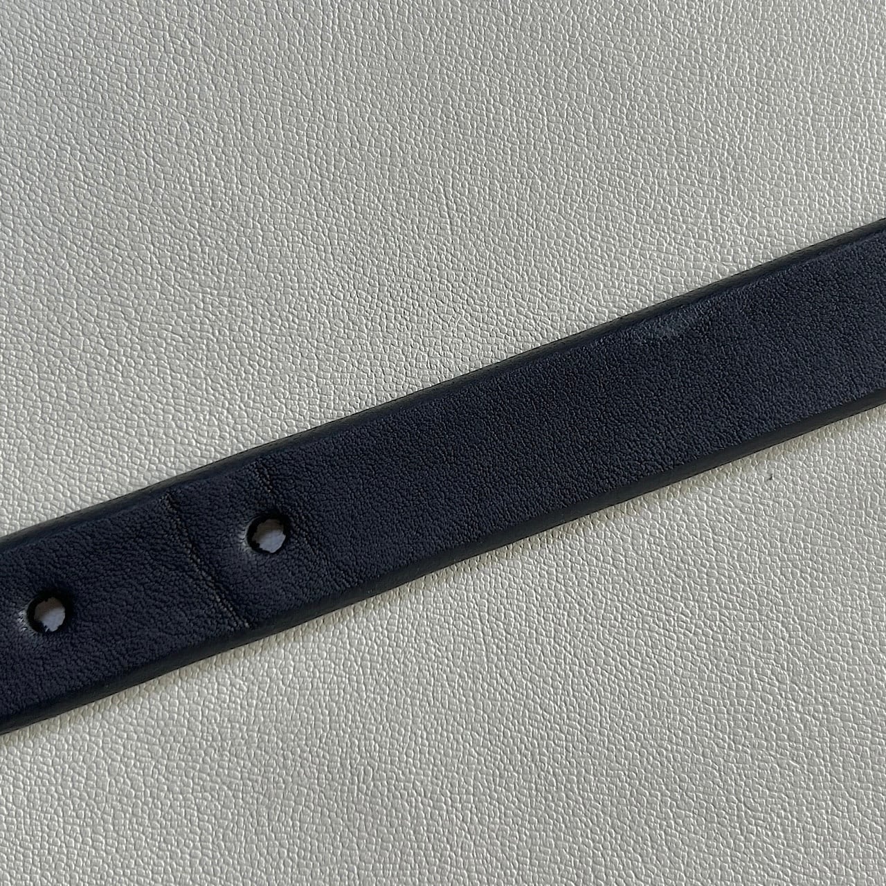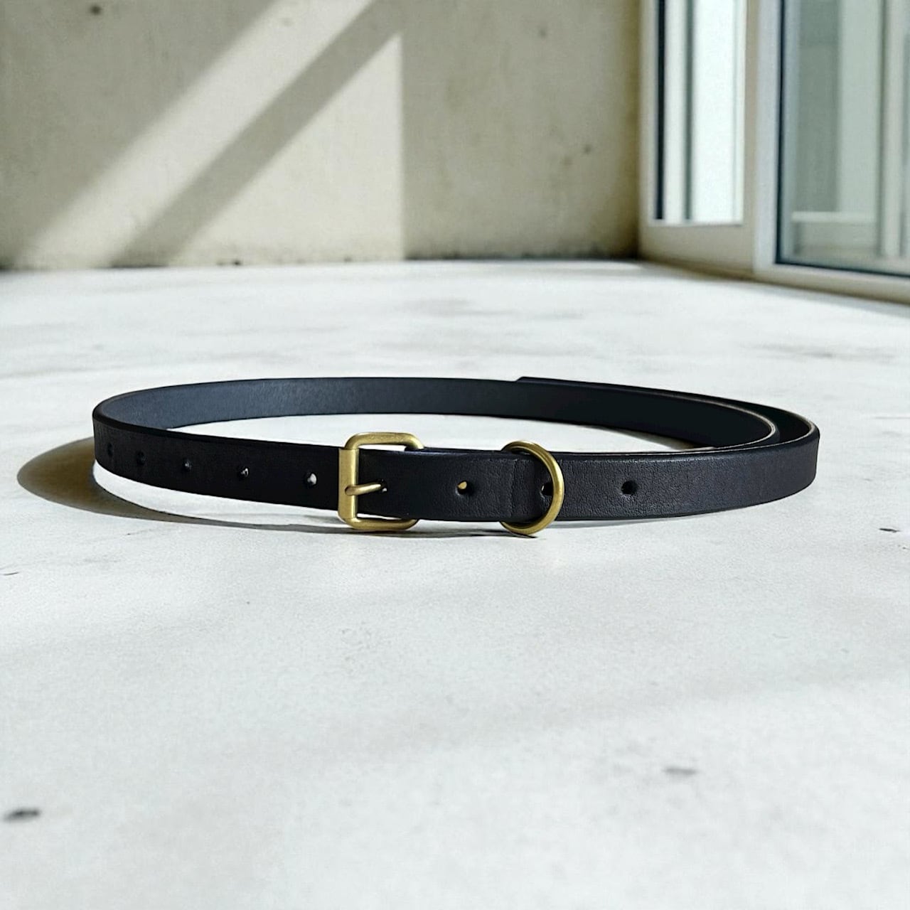 ◾️マットなブラックレザーに、ゴールドの輝きを添えたベルト。シンプルなフォルムに潜むモードな気配と、クラシカルな装飾のバランスが、大人のスタイルに都会的な奥行きをプラスします。モダンシックを体現する一本となっております。
