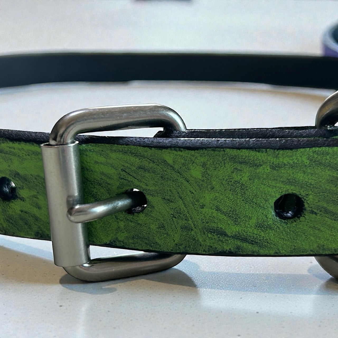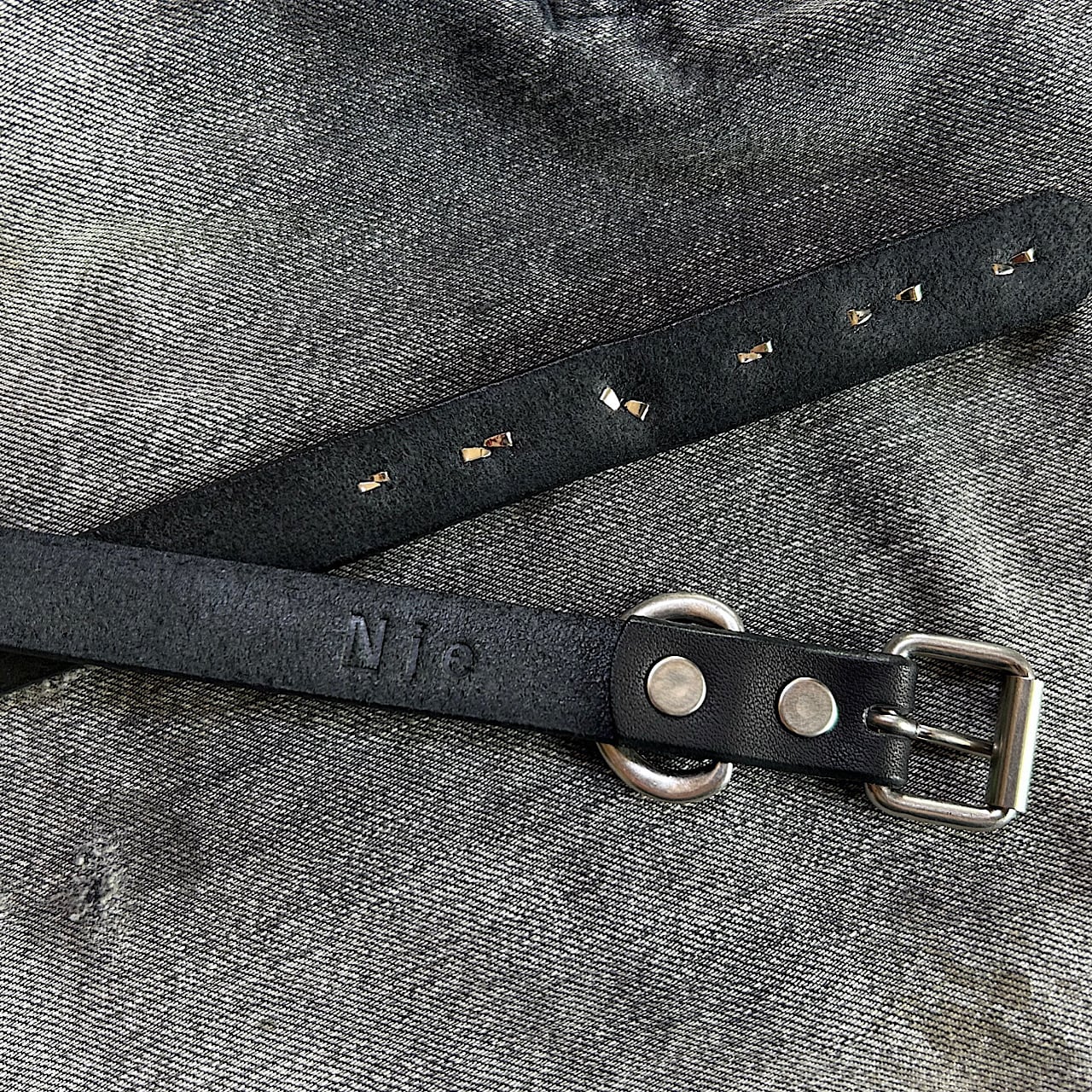 手間とノリを楽しんで思うがままに手塗りで制作した、Njeのオリジナリティを詰め込んだ唯一無二のナローベルトとなっております。