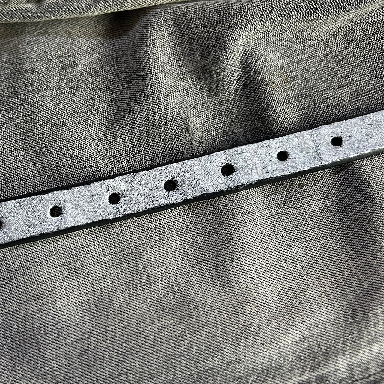 ◾️シルバーの顔料アクリルマーカーで表面全体を敢えてベタ塗りせず、下地の黒を活かす"ムラ感"を重視した仕上げを施しました。表情が一定ではないハンドペイントの魅力を楽しんで頂けると思います。この革の魅力である柔らかさ、シワやスジ、シボがあるからこそ成立する表情になっております。
