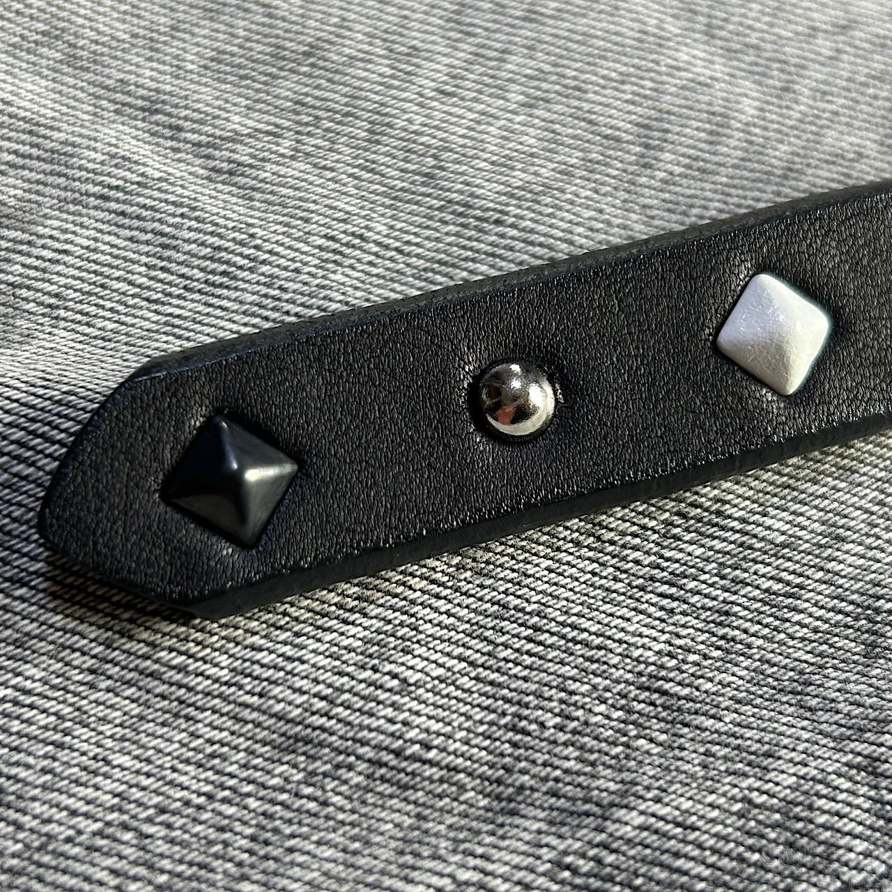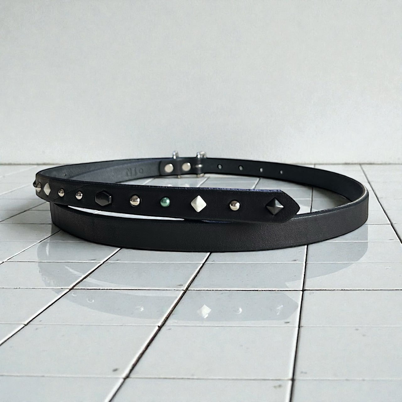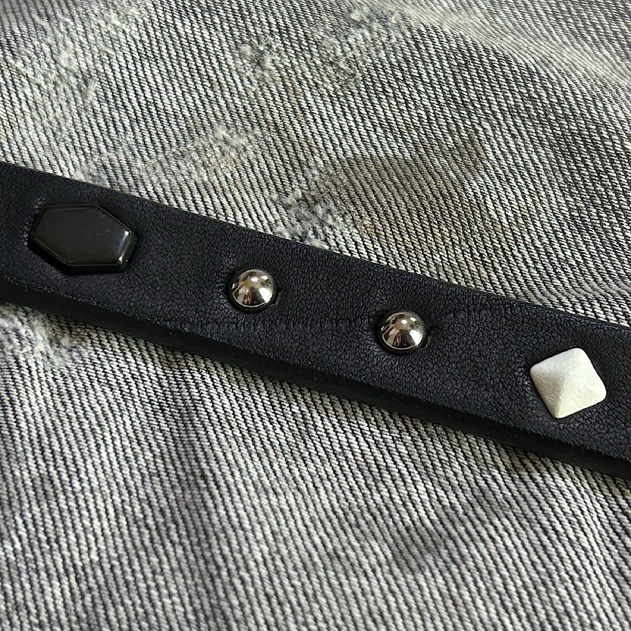 天然皮革の"証"でもあるキズ。そんな希少な1本にユニークなスタッズを織り交ぜた一点物。