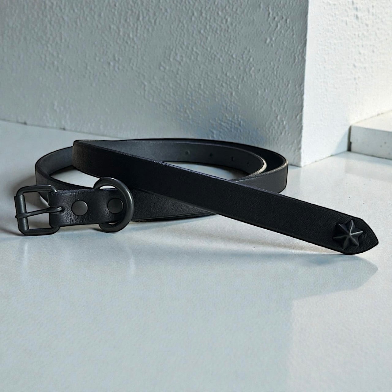 金具からレザーまで徹底して統一したブラックマットの美学。剣先に秘めたワンポイントの遊び心、普段のコーデに静かな『プラス』を添えてくれます。量産感ゼロ、ブラックマットの矜持。