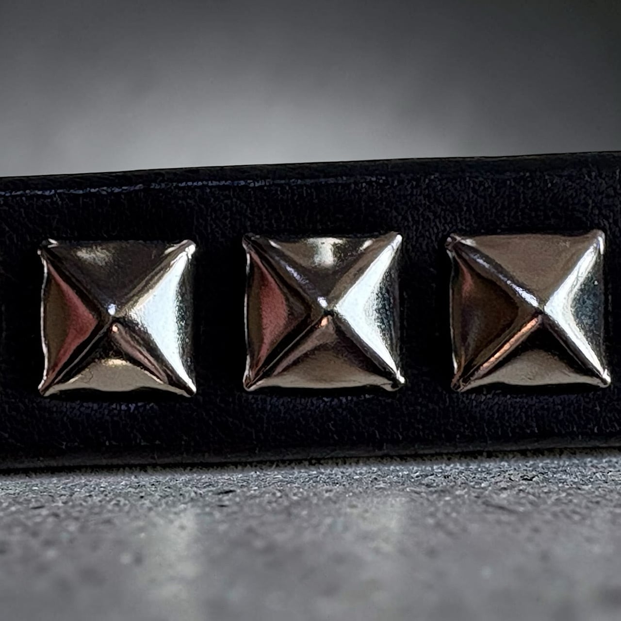 洗練されたミニマルなデザインに、ソリッドなピラミッドスタッズを整然と並べました。