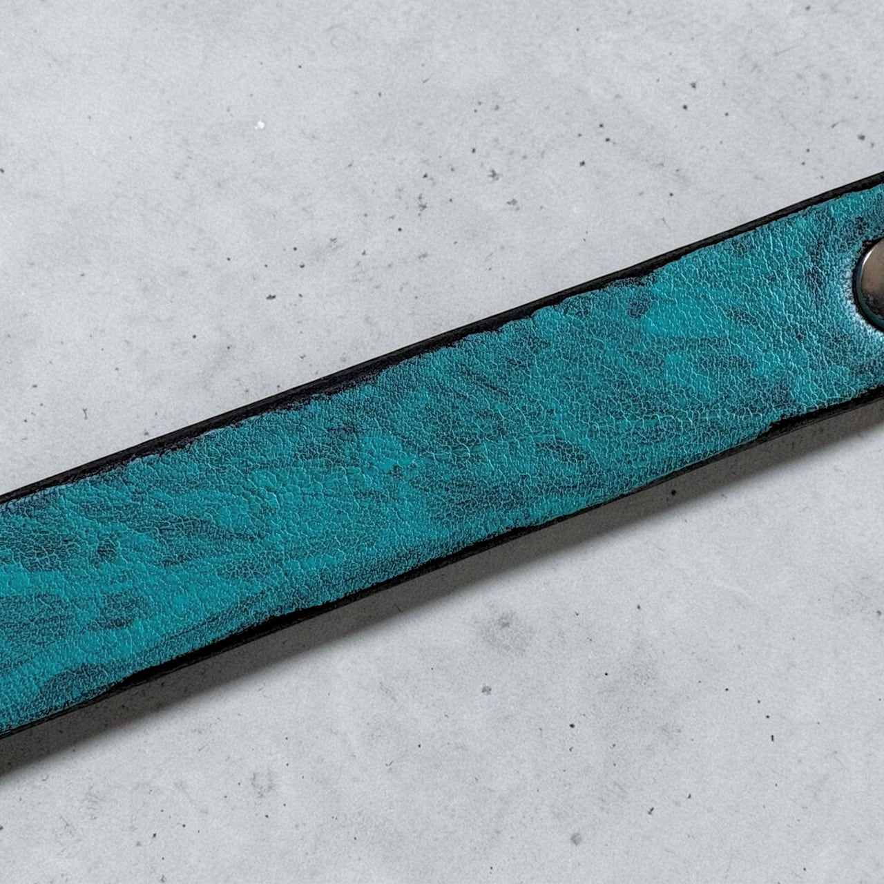 ◾️顔料アクリルマーカーで表面全体を敢えてベタ塗りせず、下地の黒を活かす"ムラ感"を重視した仕上げを施しました。表情が一定ではないハンドペイントの魅力を楽しんで頂けると思います。この革の魅力である柔らかさ、シワやスジ、シボがあるからこそ成立する表情になっております。