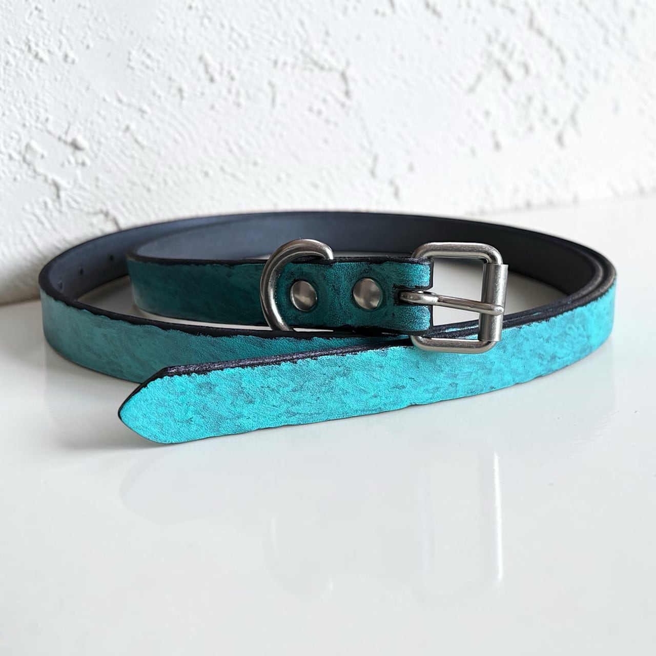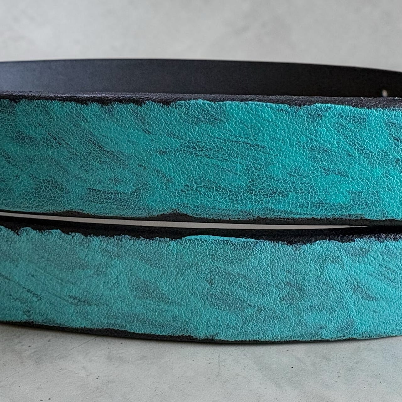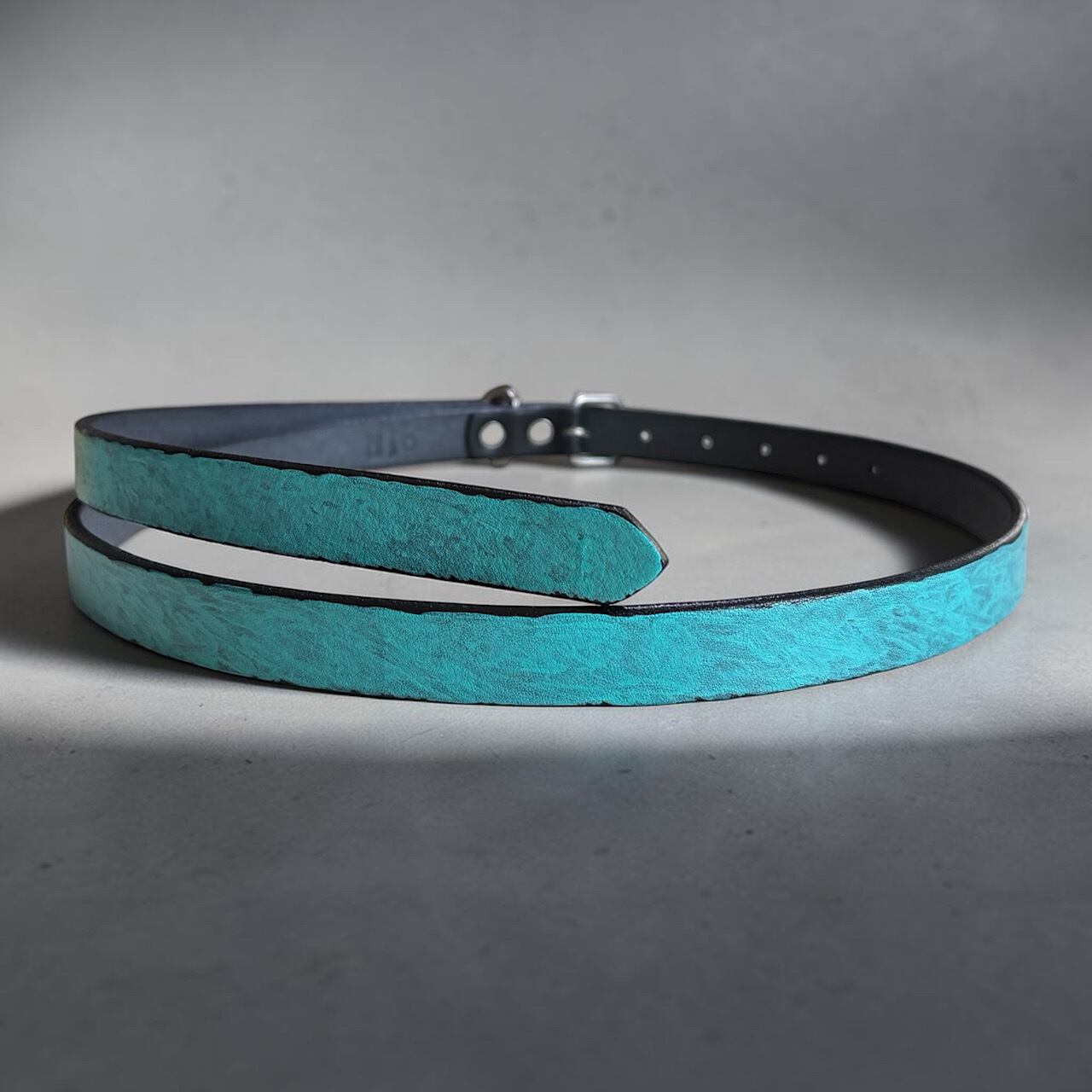 手間とノリを楽しんで思うがままに手塗りで制作した、Njeのオリジナリティを詰め込んだ唯一無二のナローベルトとなっております。