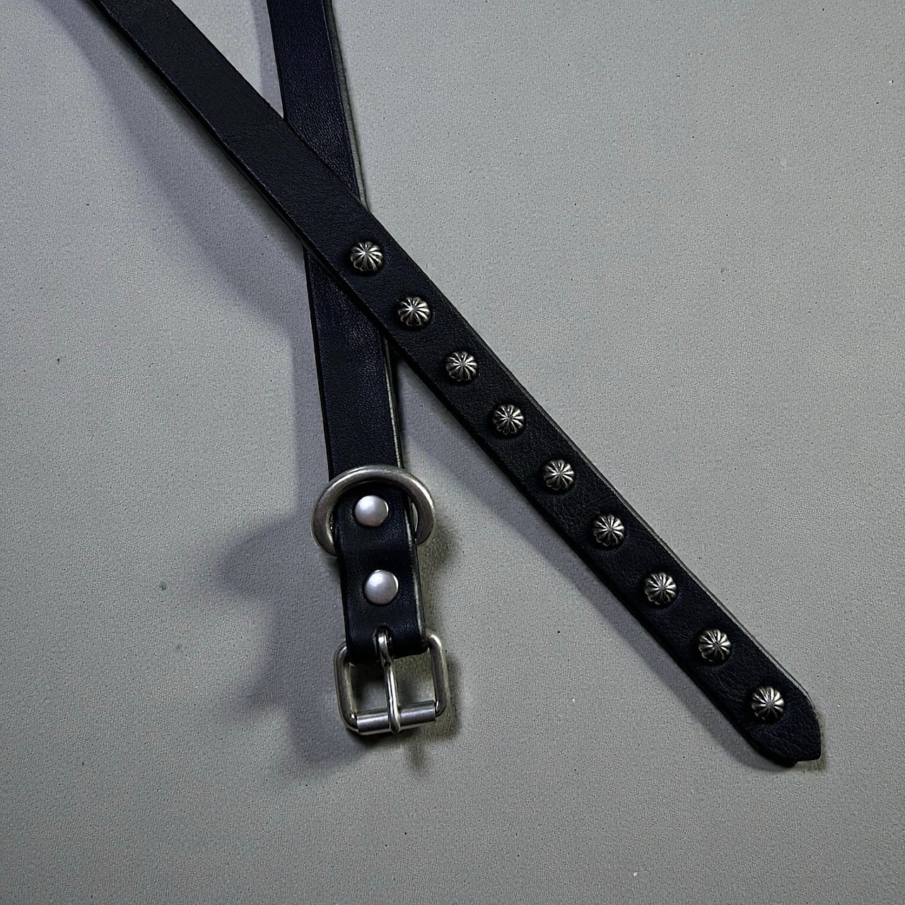 USA製のアンブレラ型スタッズをハンドカスタムしたナローロングベルトです。(スタッズ9発)