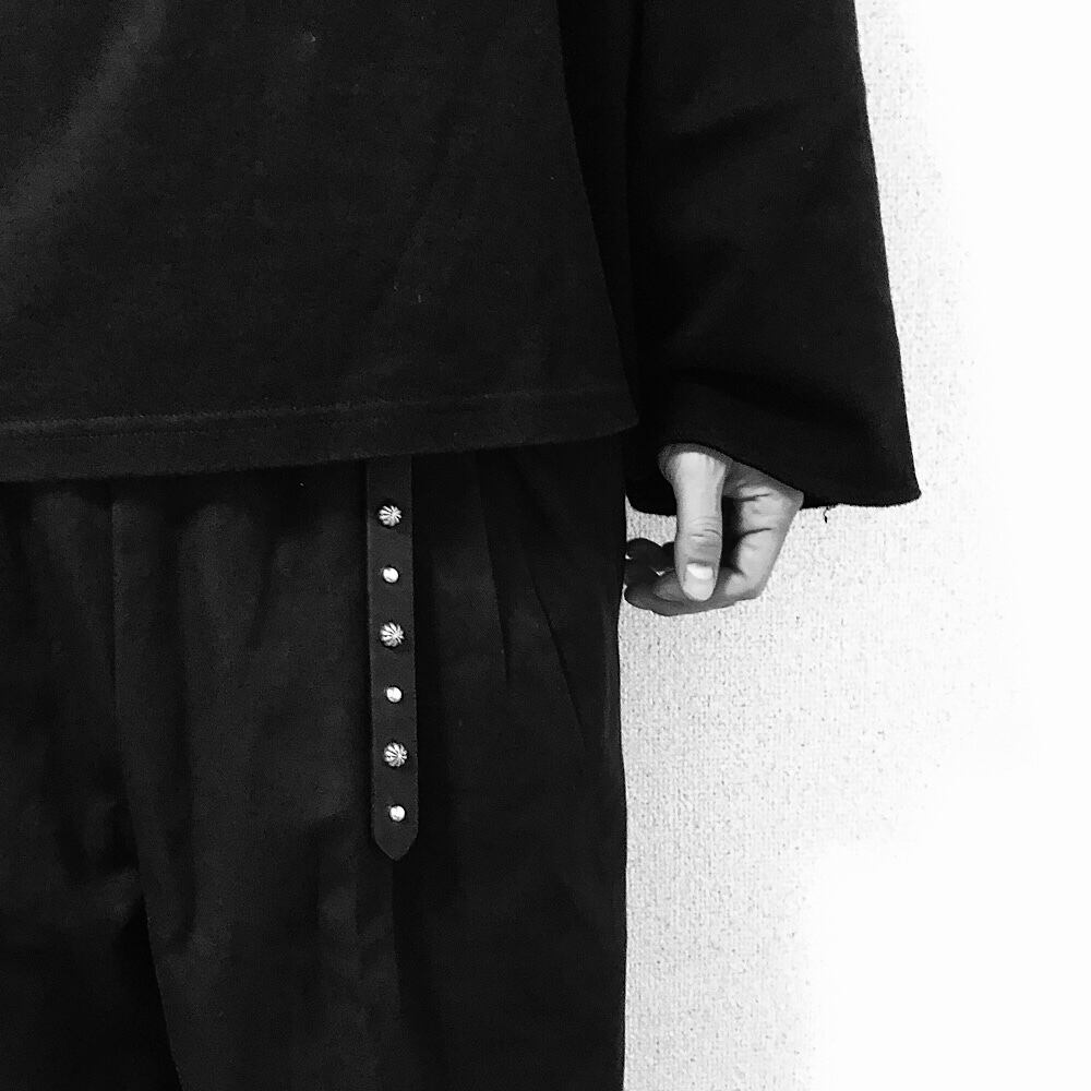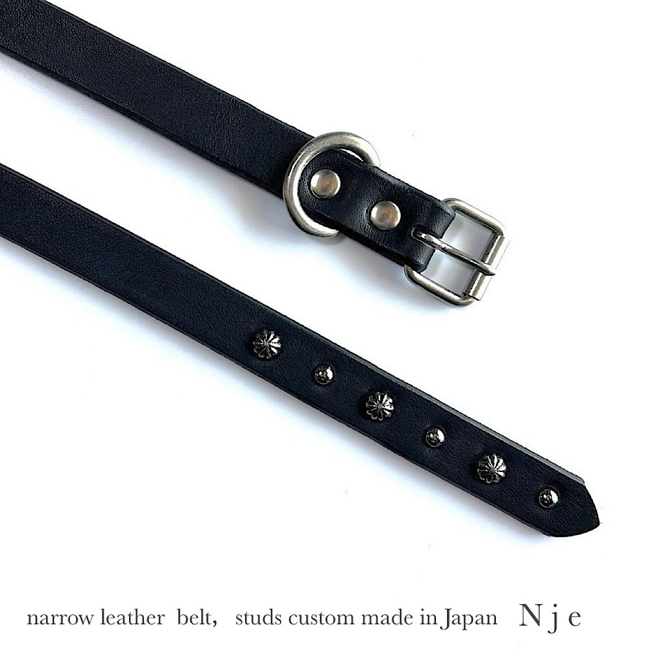 ラウンド型スタッズと、アンブレラスタッズをハンドカスタムしたナローロングベルトです。