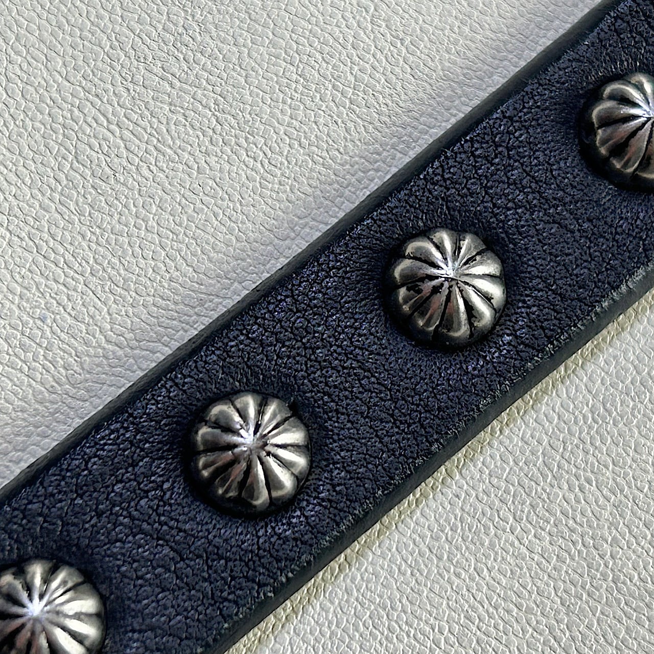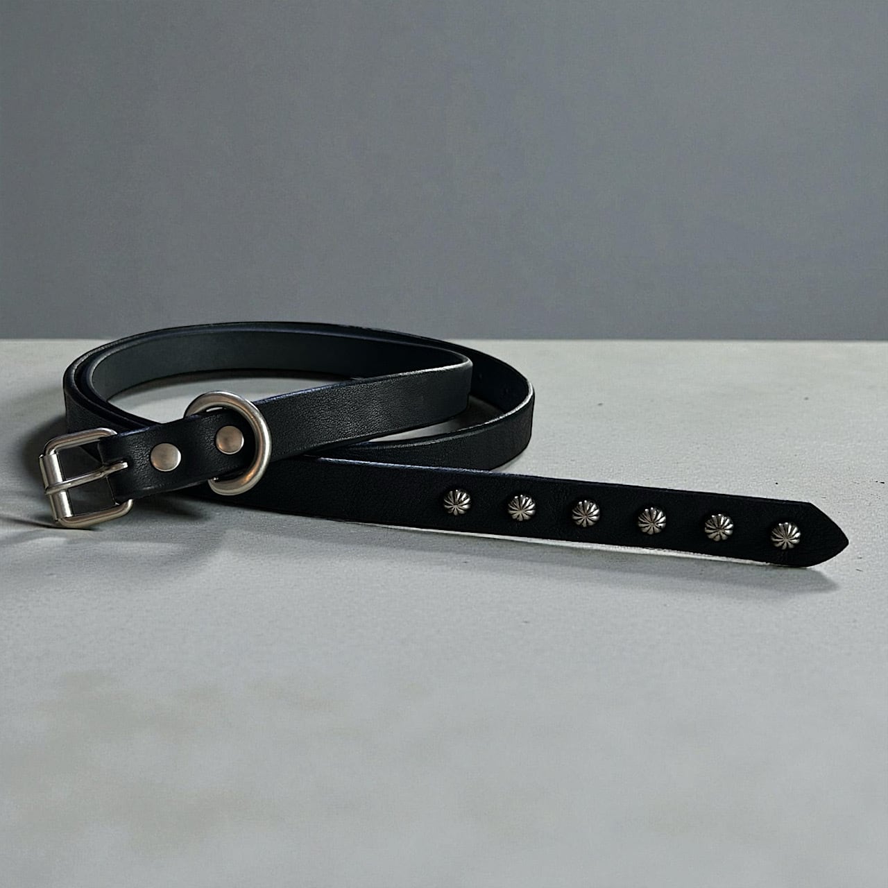 USA製のアンブレラ型スタッズをハンドカスタムしたナローロングベルトです。(スタッズ6発)