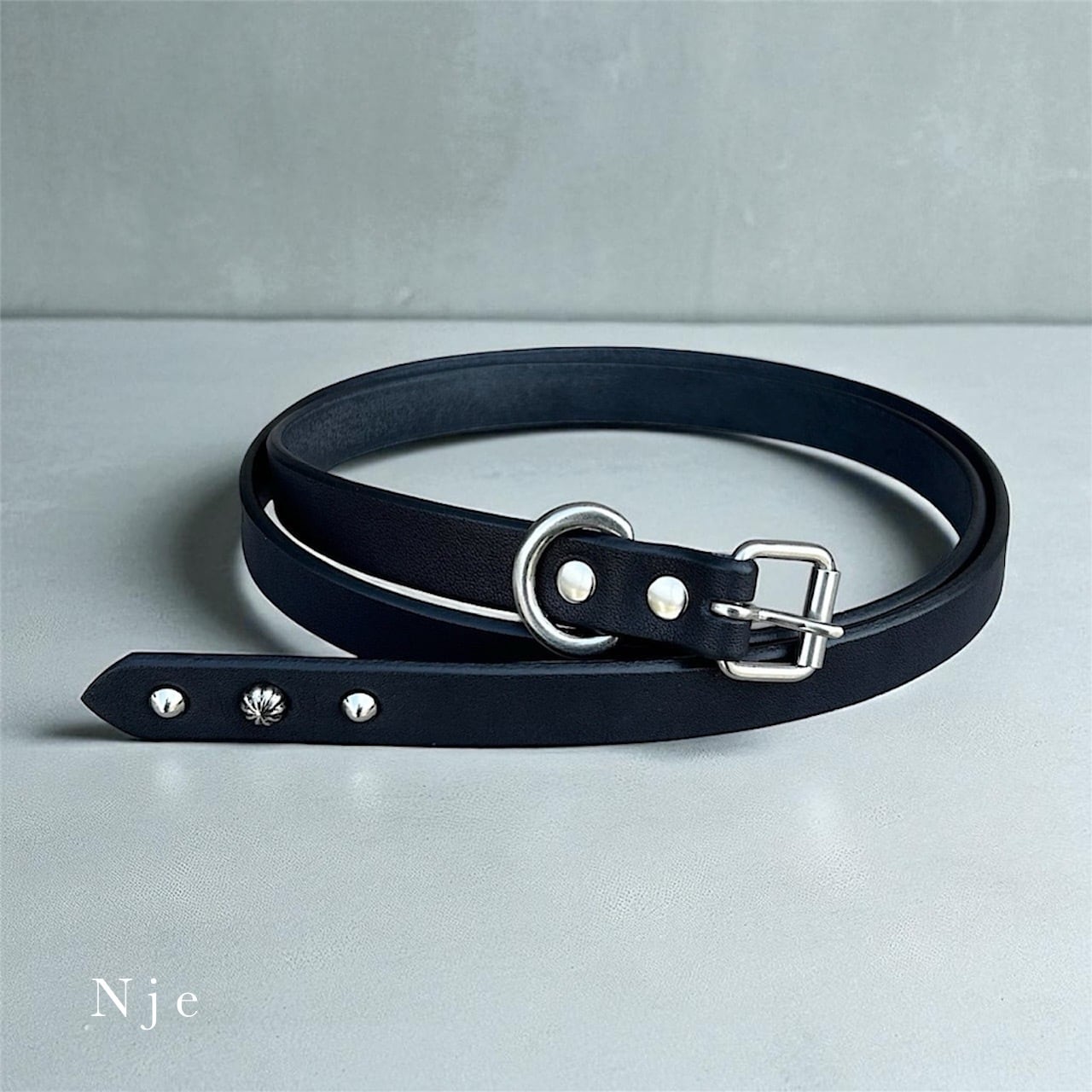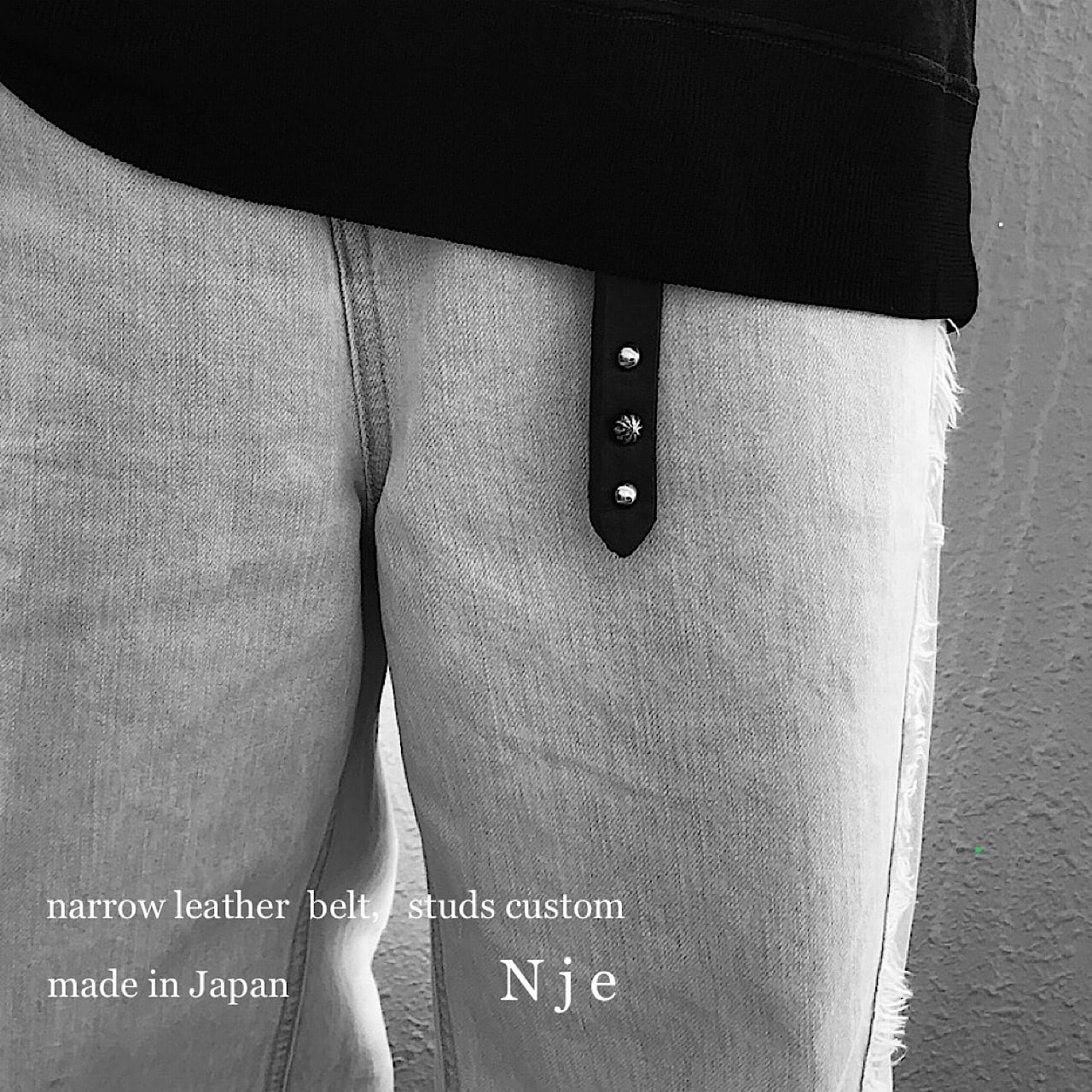 2種類のスタッズをハンドカスタムしたナローロングベルトの新作です。(スタッズ3発)