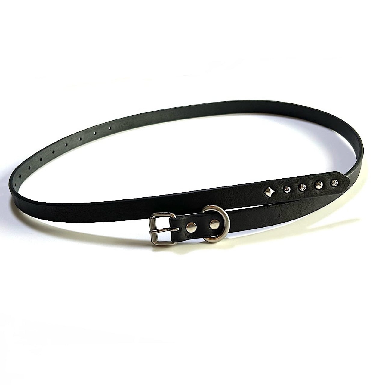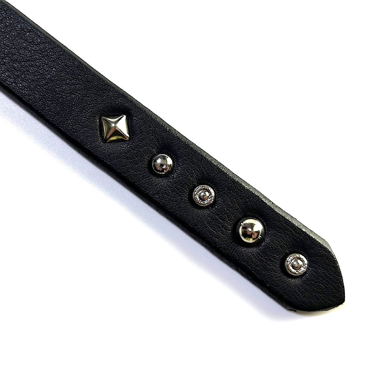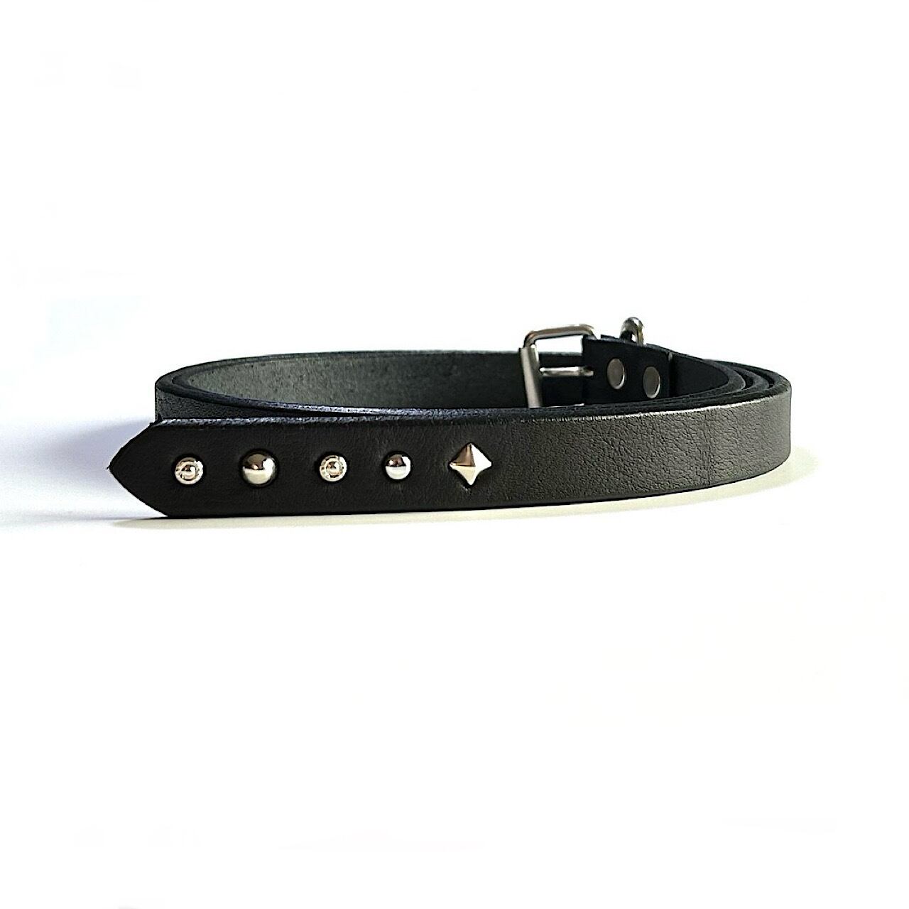 4種類のスタッズを剣先にハンドカスタムしたナローロングベルトです。(スタッズ5発)