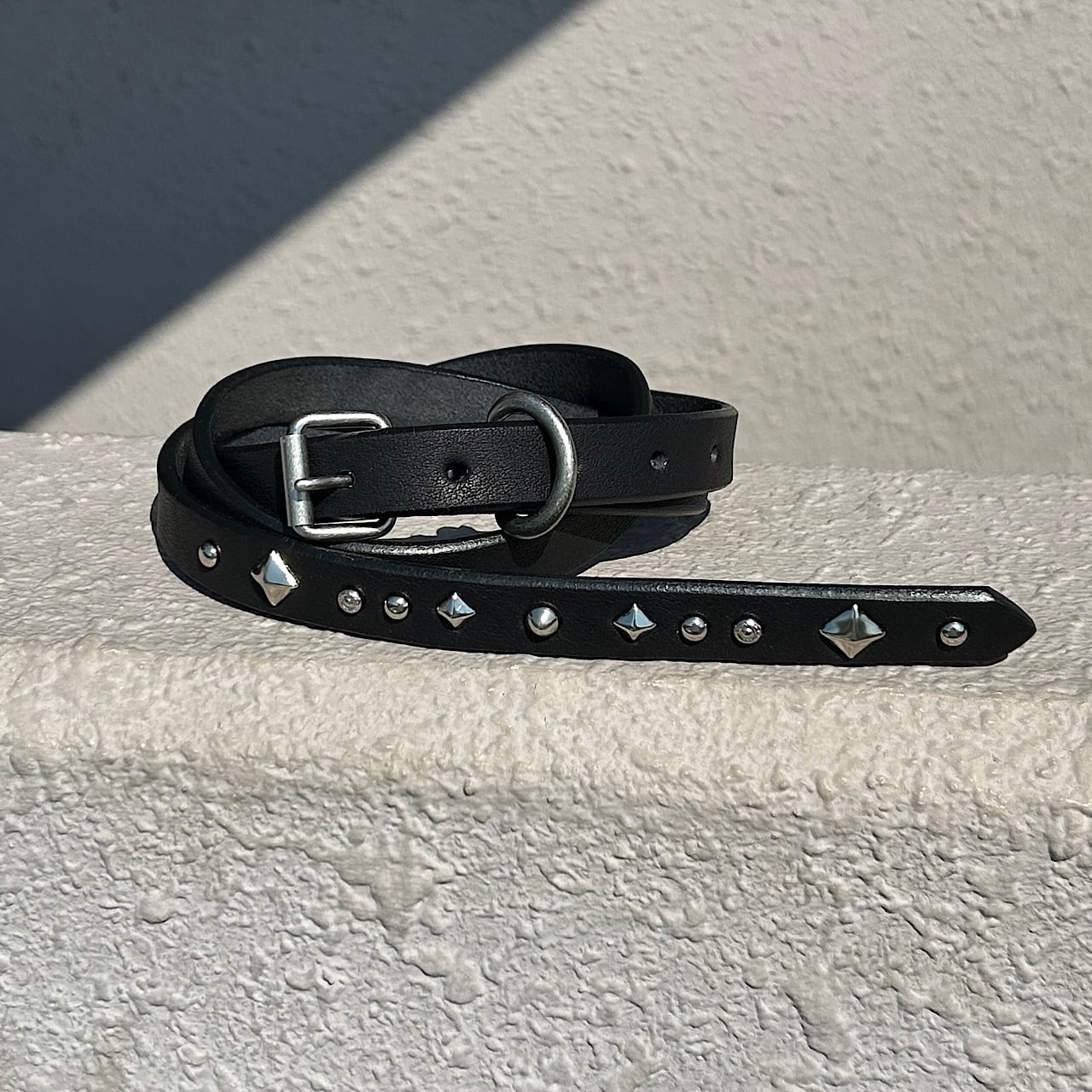 5種類のスタッズを"自遊"にハンドカスタムしたナローロングベルトです。(スタッズ11発)